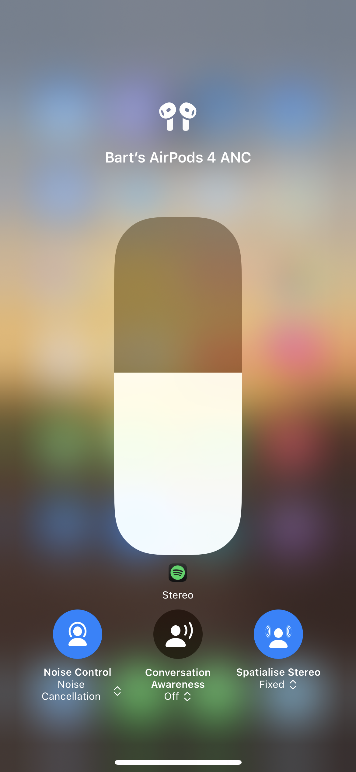 ANC and Spatial Audio settings are 'hidden' in the iOS volume bar