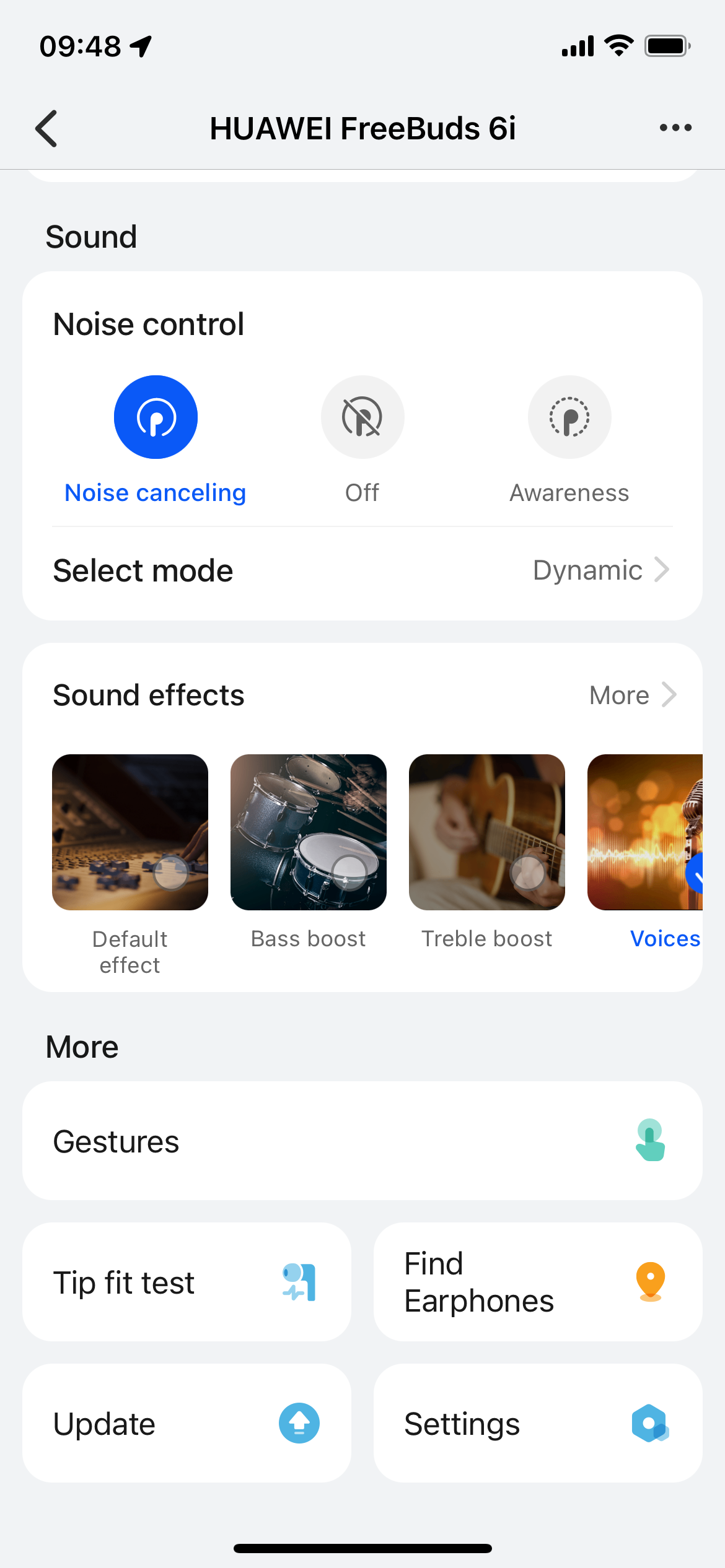 To get to the ANC off setting, you'll cycle through the Transparency mode, called Awareness here. It puts through traffic and conversations fairly well when you're listening to music up to moderate volume, completing the excellent ANC performance on the Freebuds 6i.