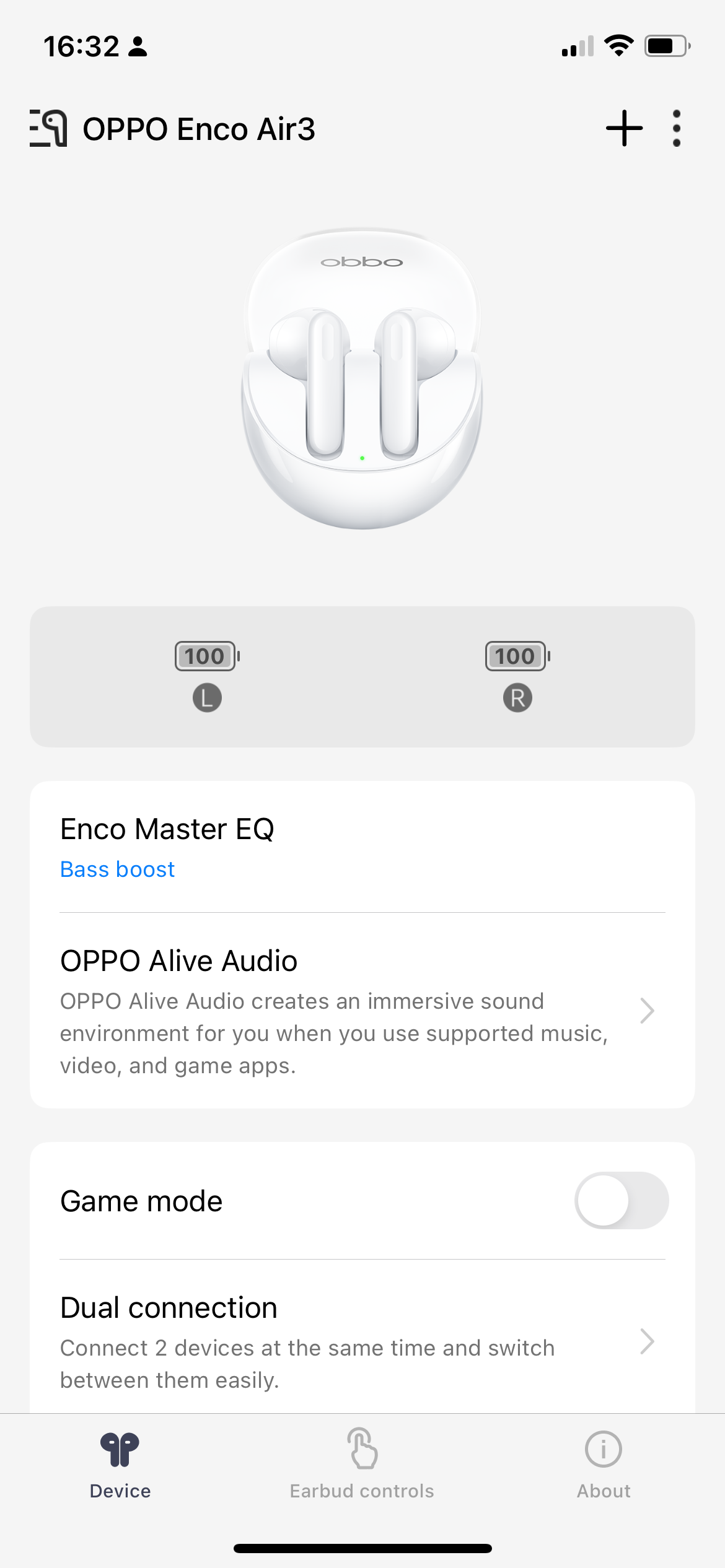 While it's a model from last year, the Enco Air3's features are up-to-date. No gimmicky Active Noise Cancelling here, but the Oppo can switch between two devices easily thanks to the multipoint connection. Phone and video calls are clear, as the microphones put your voice through natural and clear. Noise around you is audible but not too loud, and your voice also survives a bit of wind. The gaming mode is equally convincing, with the sound effects fluently following the action on a challenging game like Call of Duty mobile.