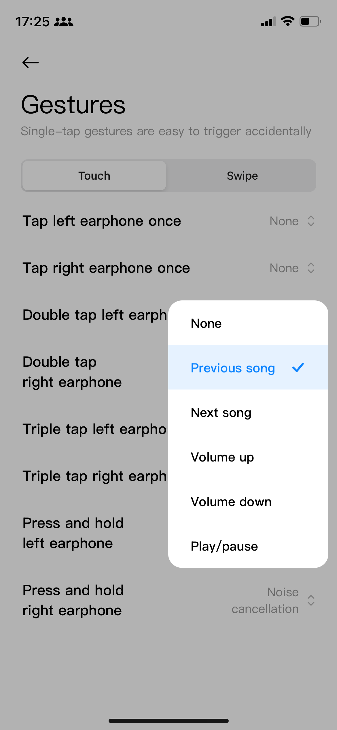 Check the battery percentage of the L and R earbud