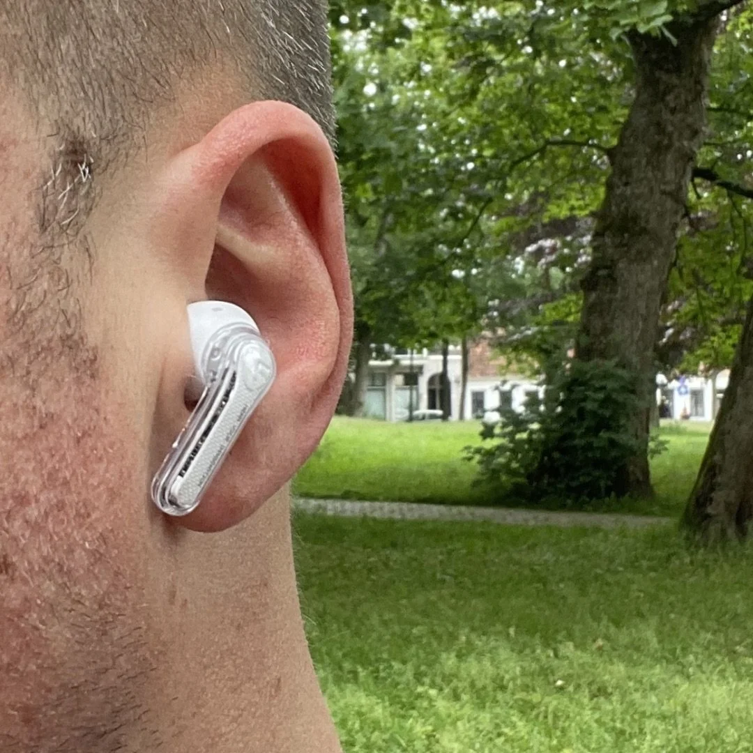 For this price, there are functions you don't have, and the list of the Clear is long: the case doesn't support wireless charging; the earbuds lack Active Noise Cancelling and a Transparency mode, and don't automatically pause music when you take an earbud out. Multipoint connectivity misses too, so you can only connect them to one device at a time.